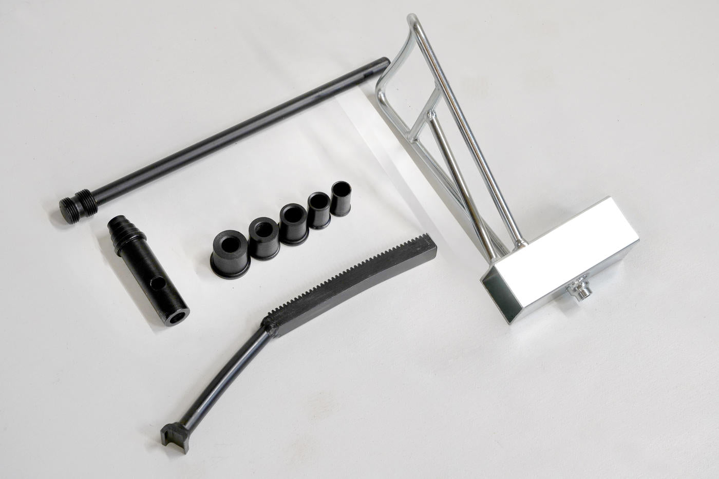 - TMT Original pusher tool with special adapters for 12-25 mm axles and standard+short pusher for 10-21" wheels